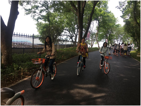 我们怀着轻松愉悦的心情来到了武汉东湖绿道,这是国内首条城区内5A级景区绿道。有的骑着共享单车,结伴而行。有的漫步在林荫道上,体会徒步的乐趣。大家呼吸着自然的清新空气,感受着绿树成荫的凉爽,领略着湖光山色的美景,品味着青春的活力,分享着青春在路上的喜悦。